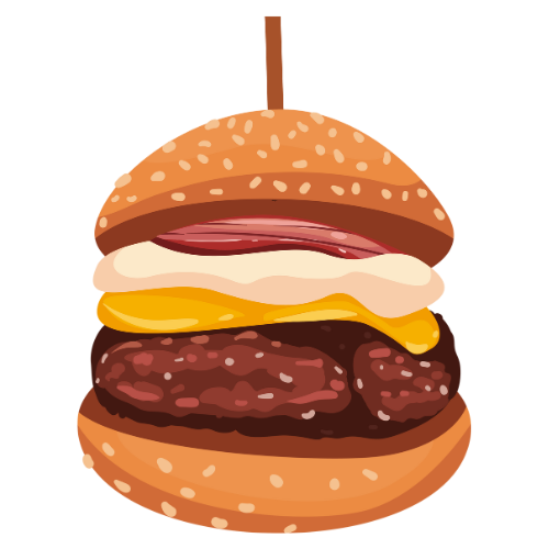 Hamburguesa con carne de res, bacon crujiente, queso cheddar, cebolla caramelizada y salsa BBQ. Incluye patatas.